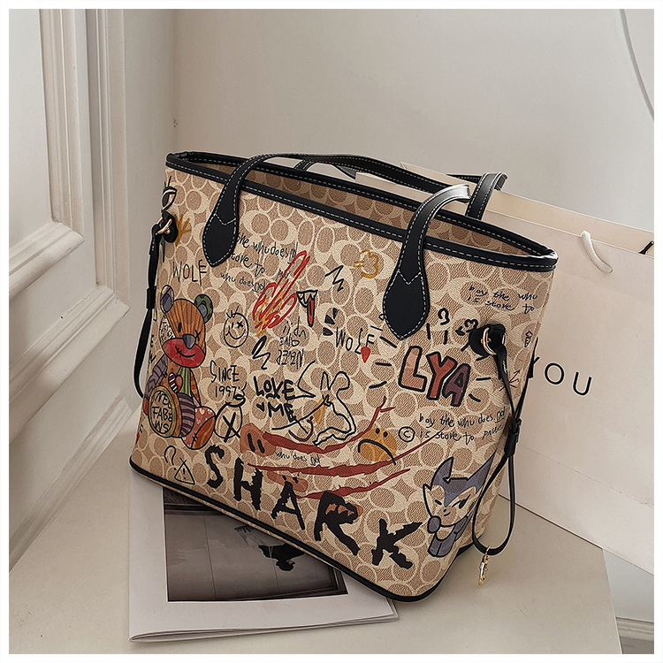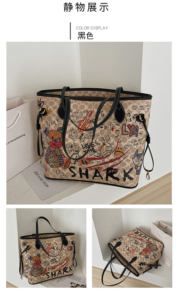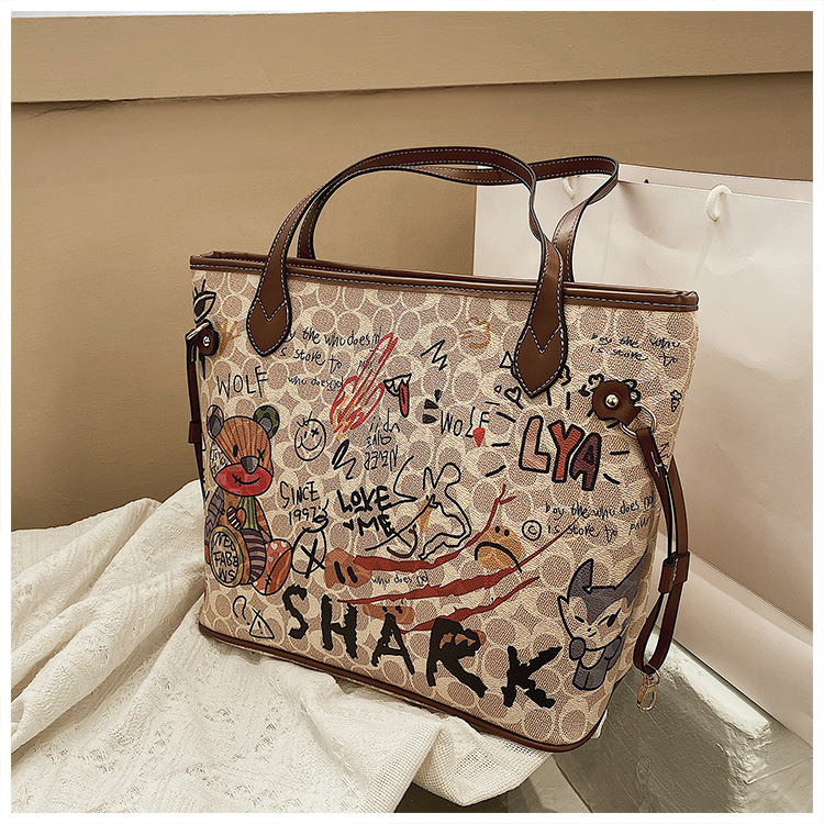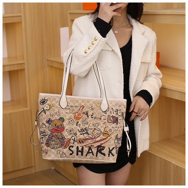 2025 new bag cartoon bear soft skin graffiti printing tote bag handbag large capacity