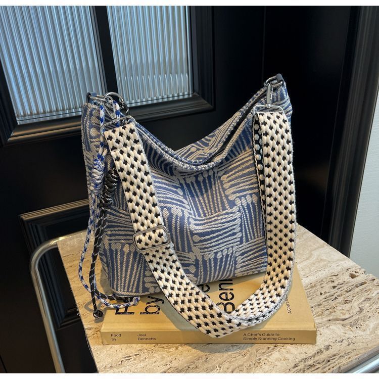 2025 new Korean canvas bag large capacity high-end wide shoulder strap single shoulder messenger bag niche autumn and winter women's bag