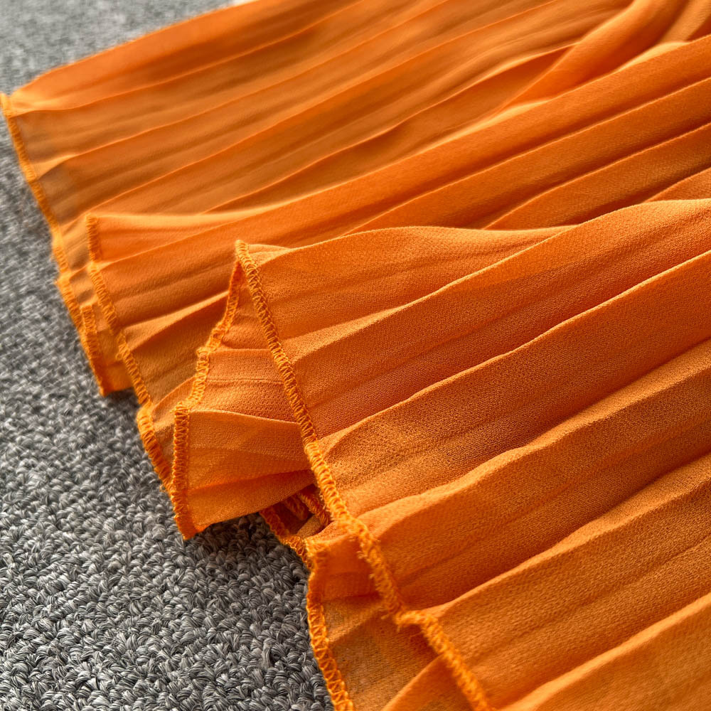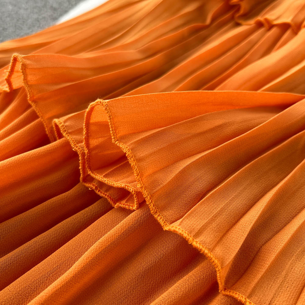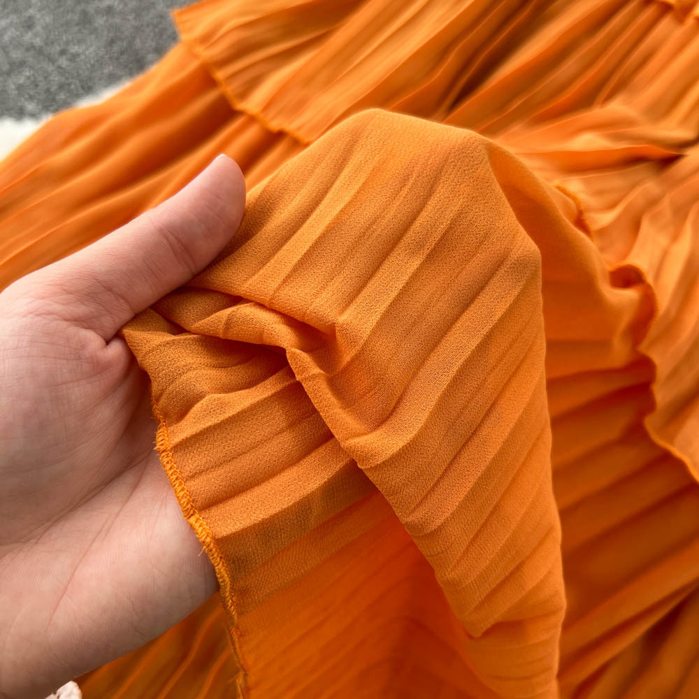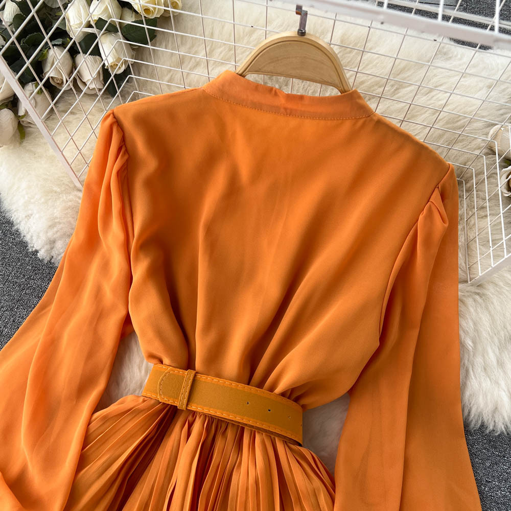 2025 spring and summer new big pendulum long-sleeved chiffon dress women's waist temperament Platycodon coffee break cake long skirt tide