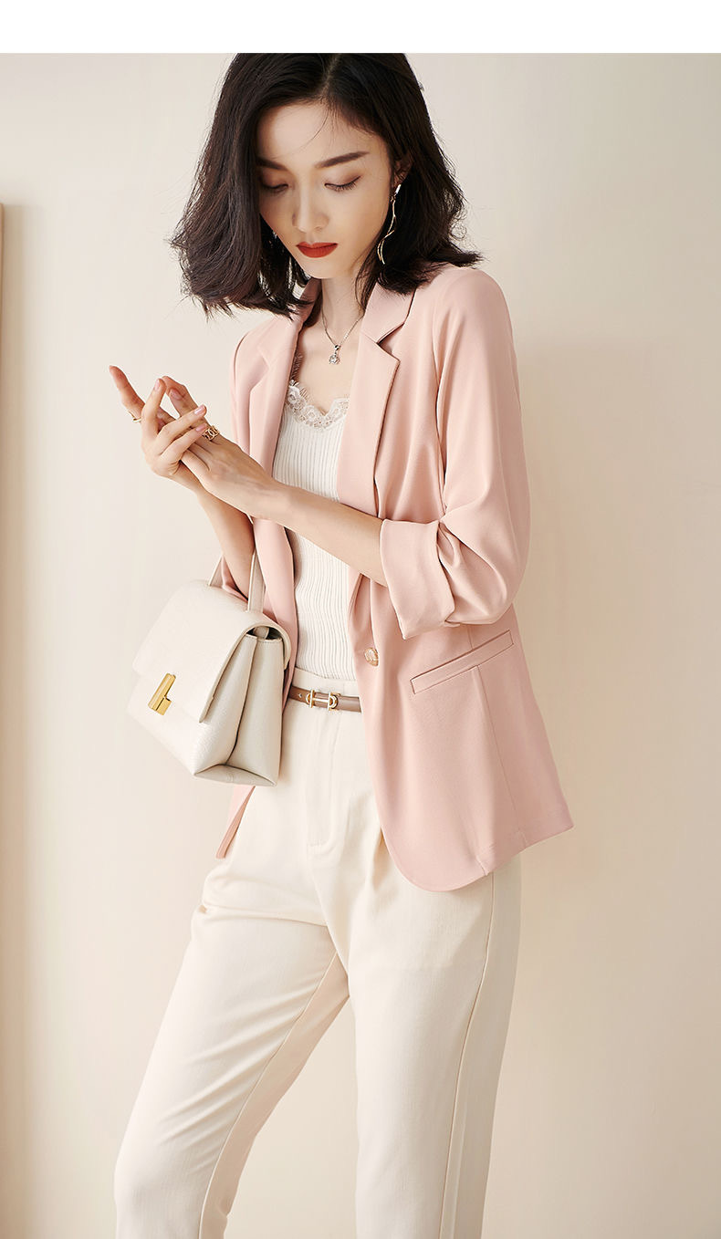 2025 spring and summer new intellectual elegance one button slim fit casual versatile seven-quarter sleeve blazer women