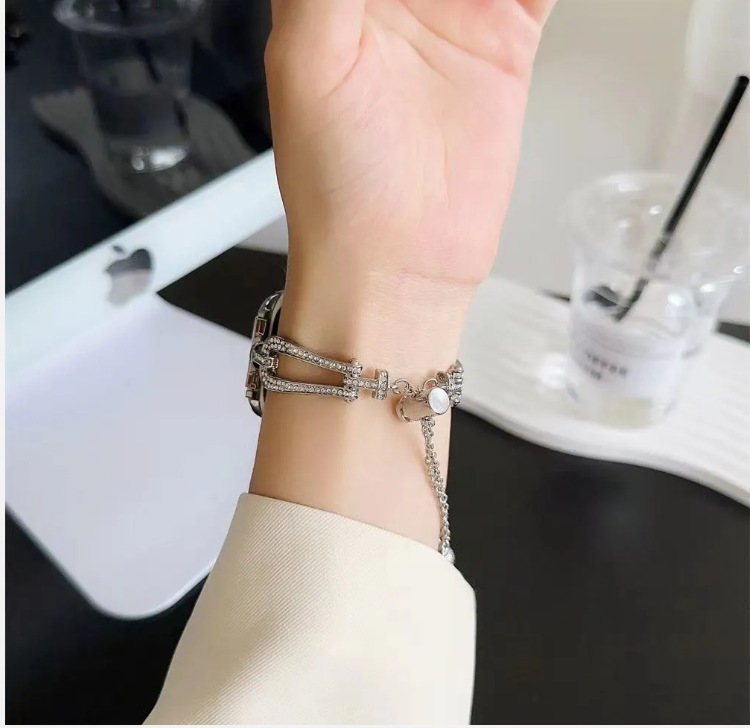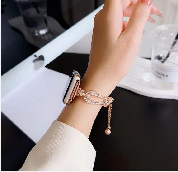 Applicable to Apple Watch Horseshoe Buckle U-shaped Full Diamond Bracelet i watch678s9 Chain Watch Strap
