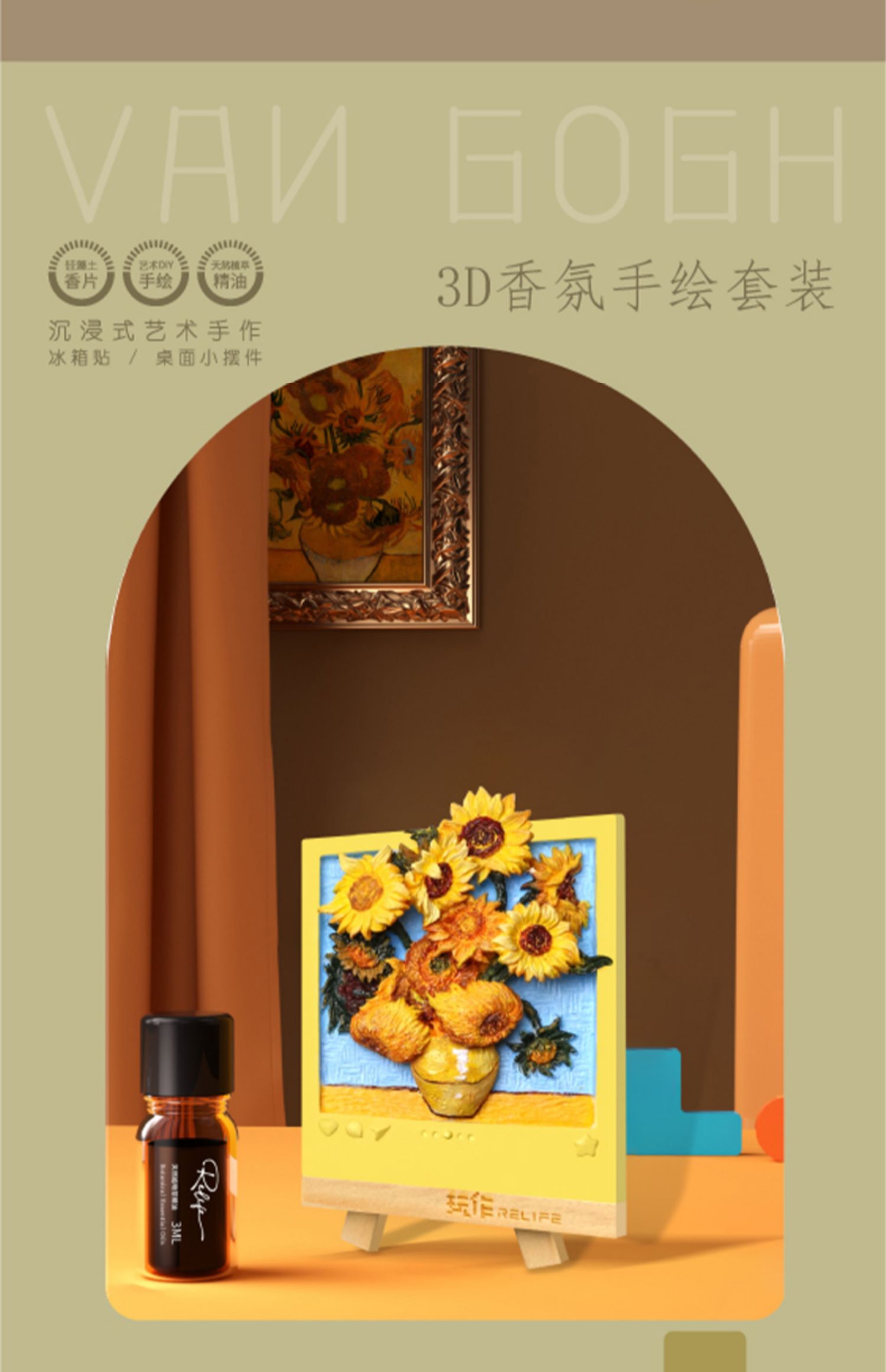 Aromatherapy refrigerator magnet coloring DIY digital oil painting Van Gogh acrylic paint three-dimensional relief painting