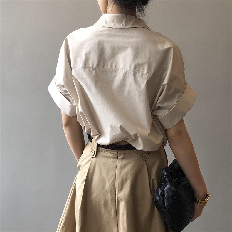 Bat short-sleeved shirt women's design sense niche Hong Kong style retro loose shirt summer thin chic Korean top