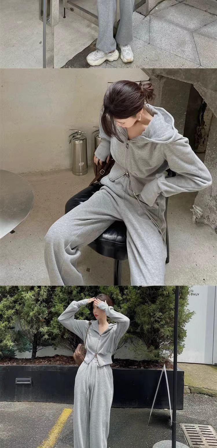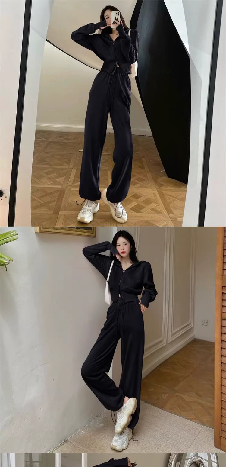 Casual sports suit women's 2025 early spring new Korean version hooded jacket high waist drawstring leggings two-piece set