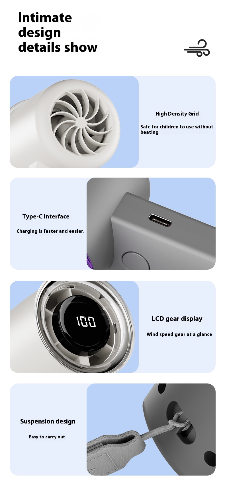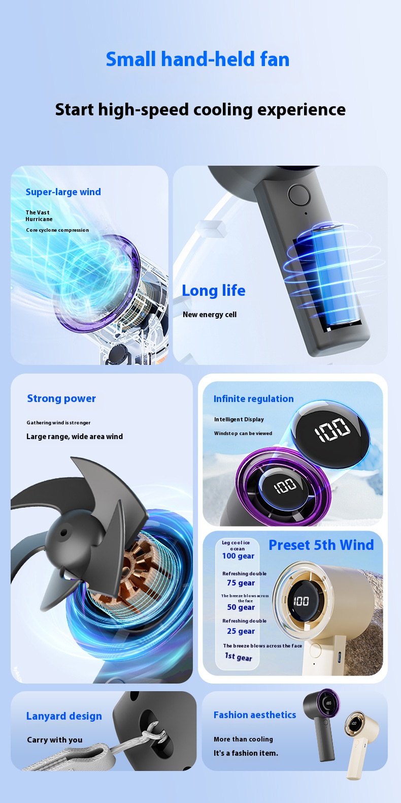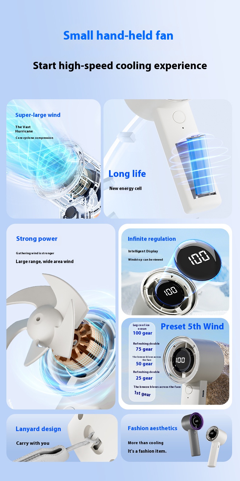 Digital display handheld small fan USB charging fan Student fan Dormitory portable small fan Handheld fan