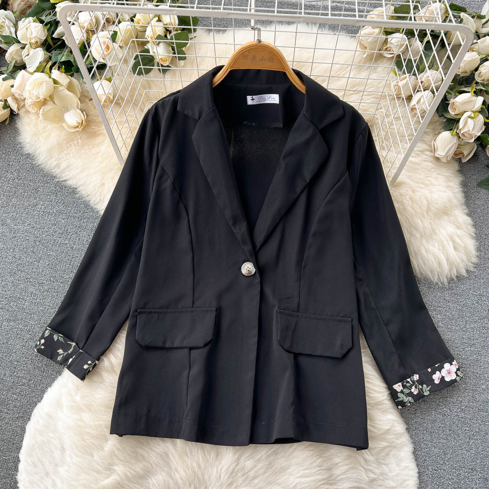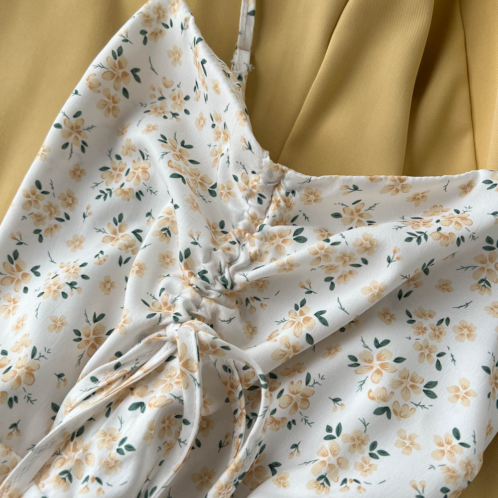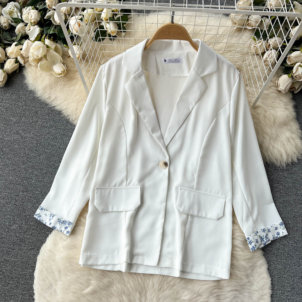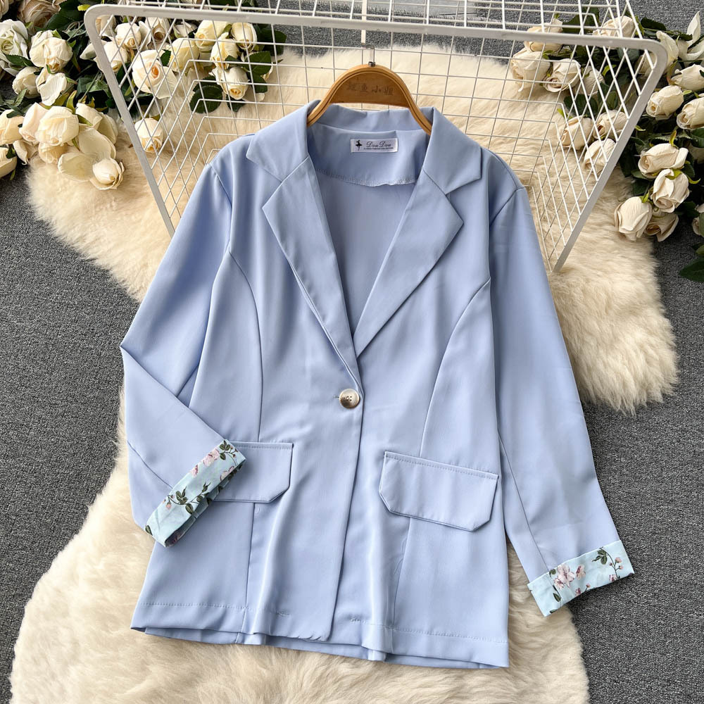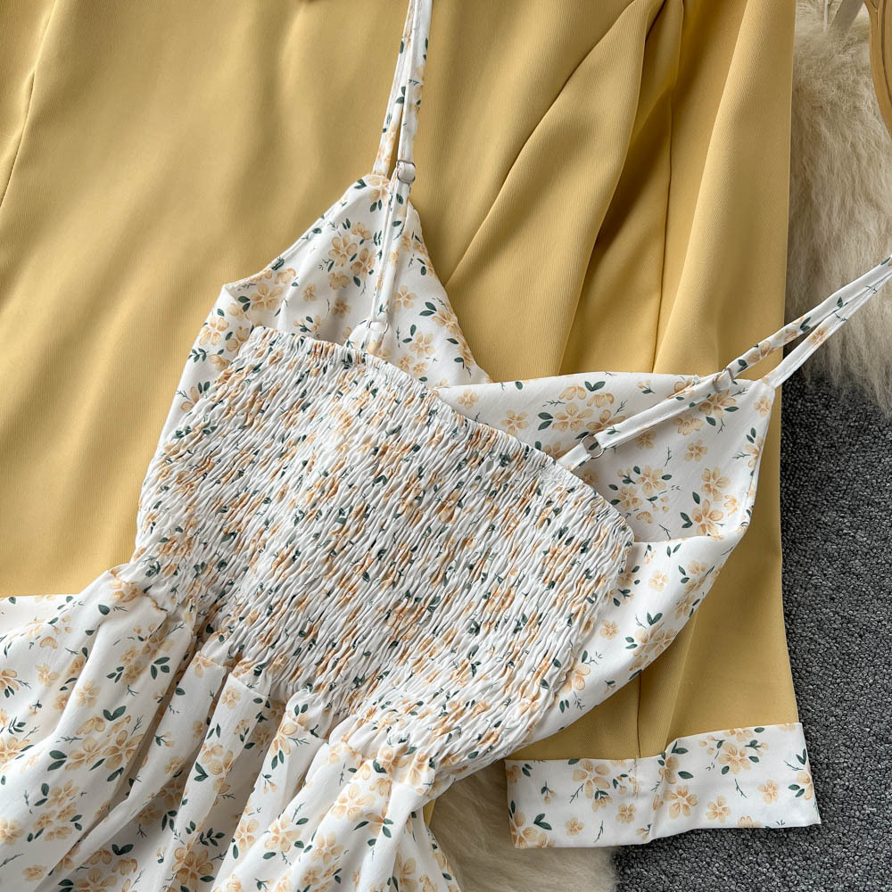 French high-end loose, sweet and salt suit women's long-sleeved suit jacket + floral fairy suspender dress