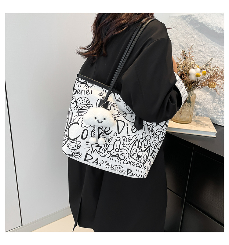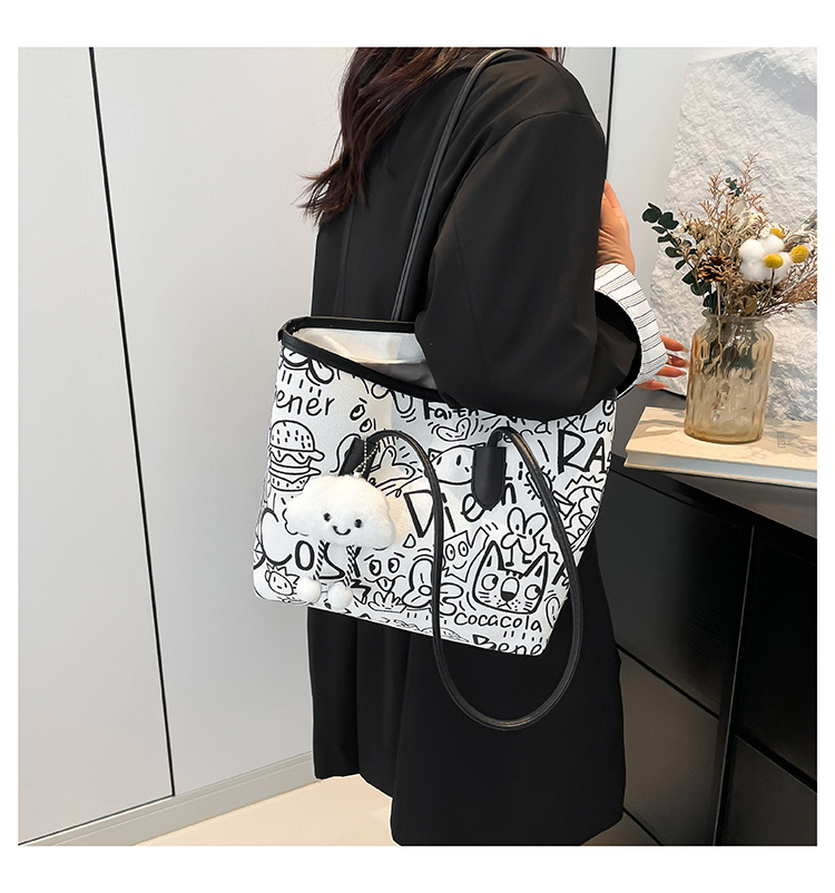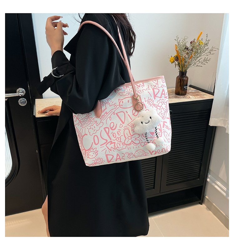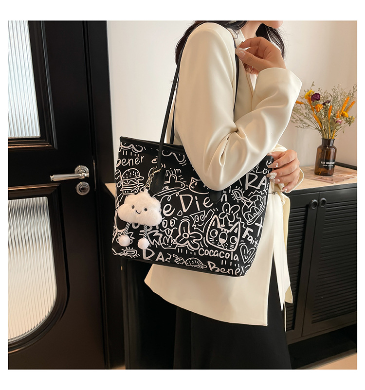 Graffiti canvas bag women's 2025 new casual shoulder bag versatile large-capacity student class commute tote bag