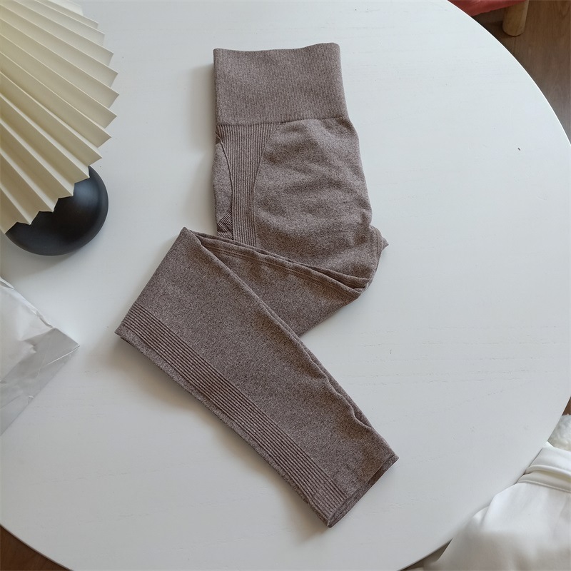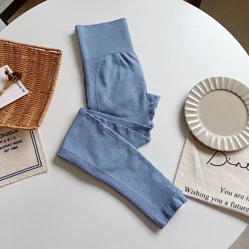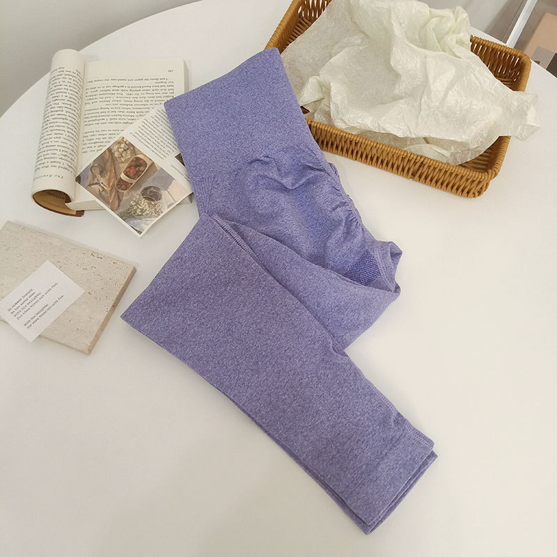 High waist fitness yoga pants hip lift exercise seamless solid color high elastic knitting nine points comfortable