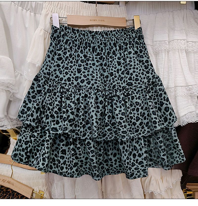 Leopard print short skirt elastic new 2025 spring and summer skirt small high waist pleated skirt short puffy cake