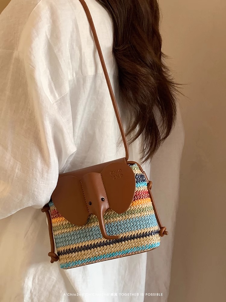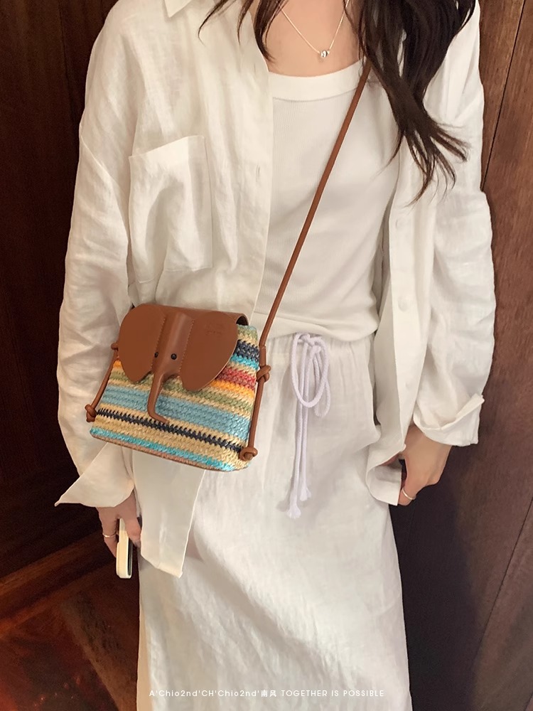 Nanfeng Chio2nd summer night evening wind bucket bag rainbow baby elephant woven bag women's summer shoulder messenger bag