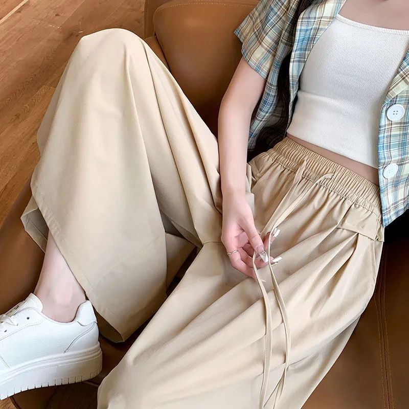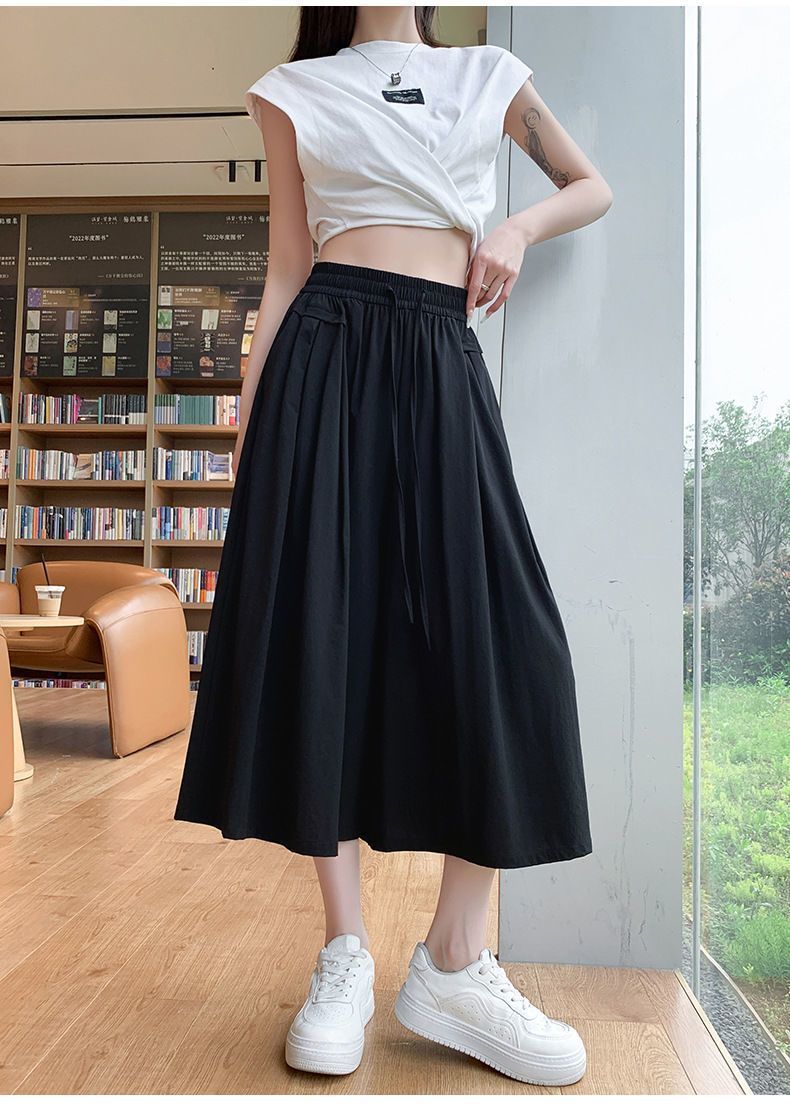 New seven-point pants skirt simple and fashionable solid color versatile loose pleated lazy wind mountain pants summer thin women's tide