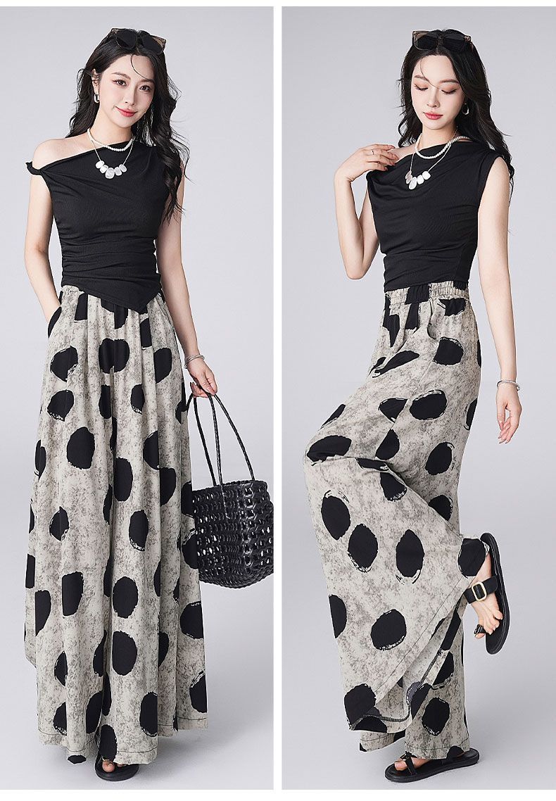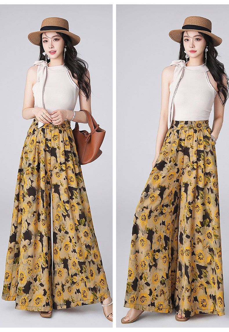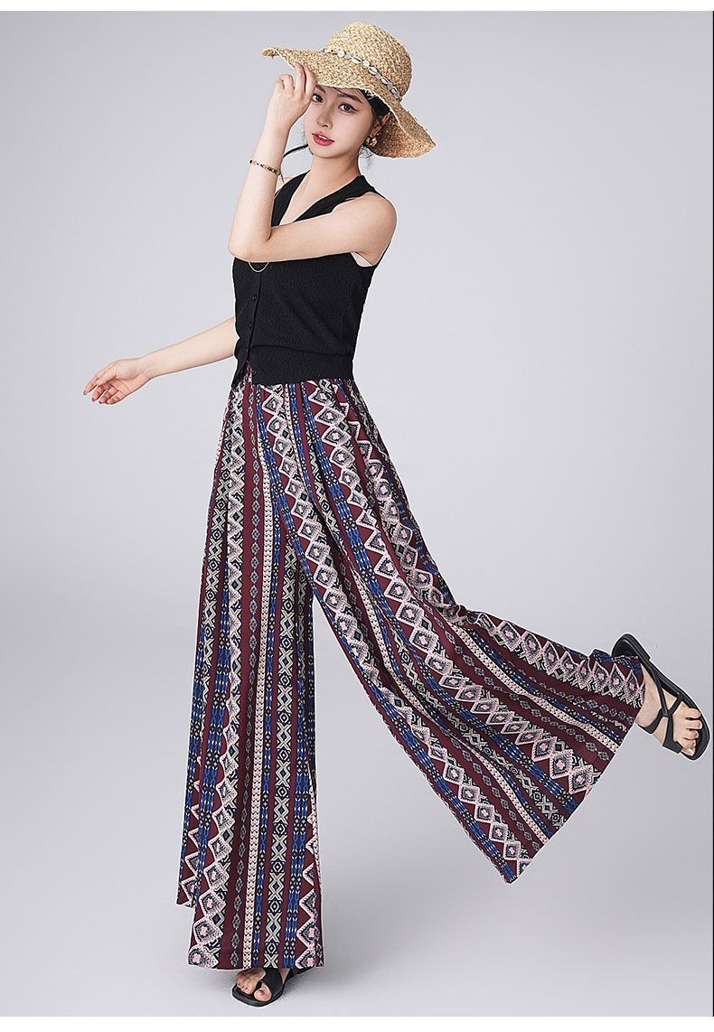 Printed beach culottes 2025 summer new high-waisted and thin sunscreen pants loose nine points/trousers casual women's trousers