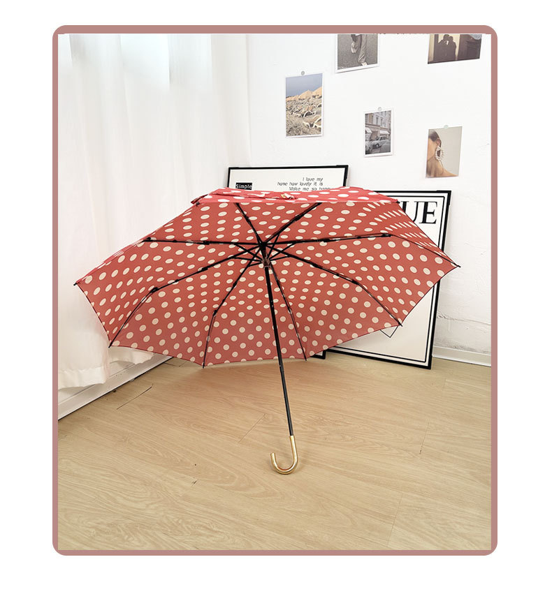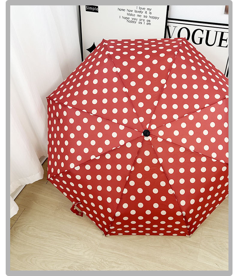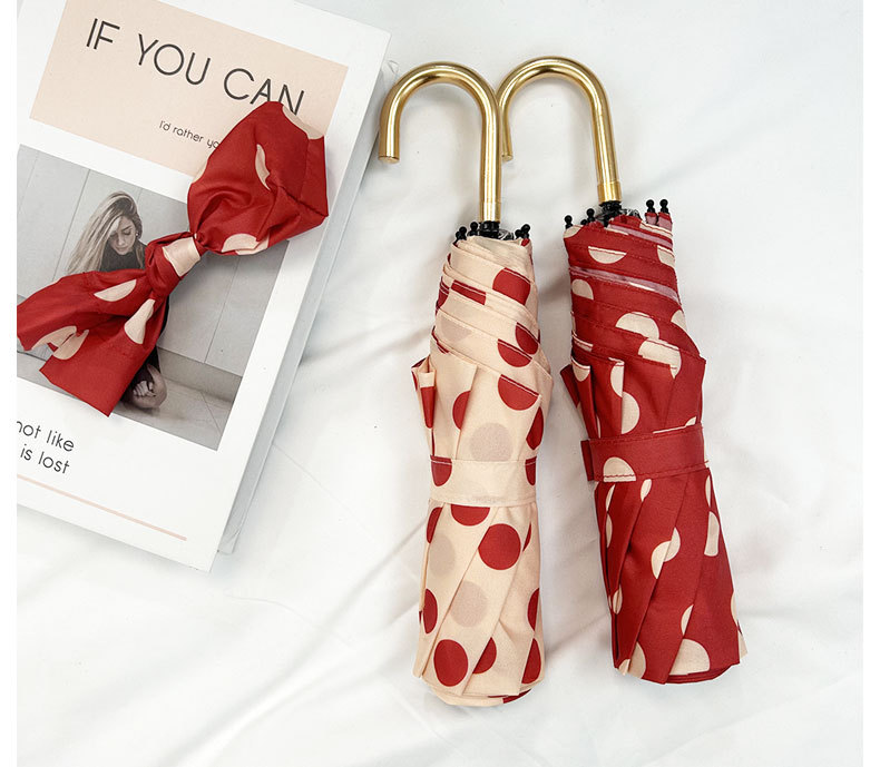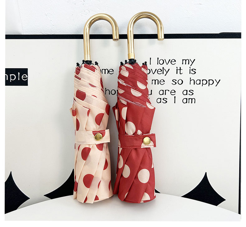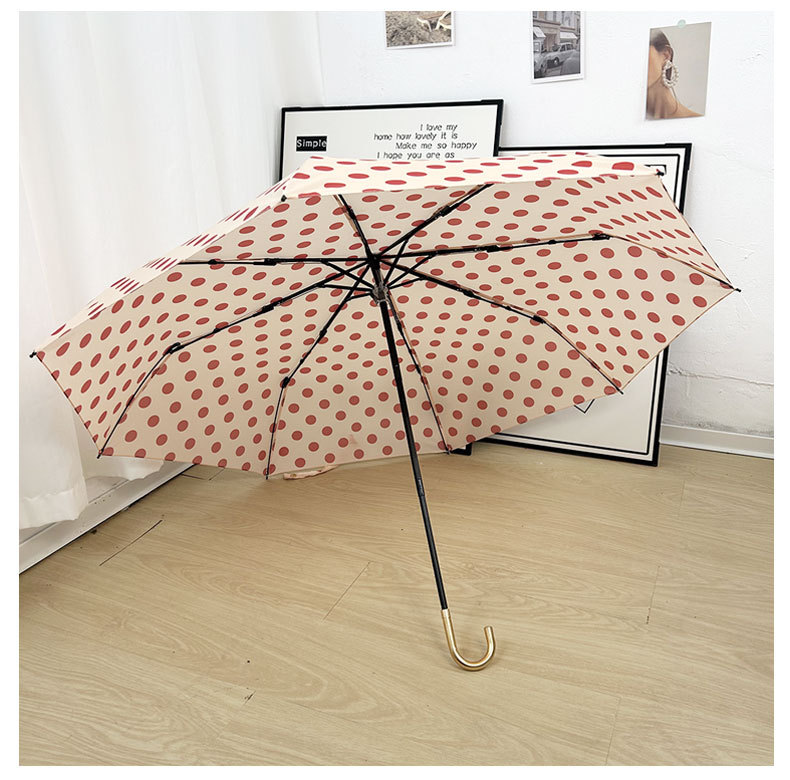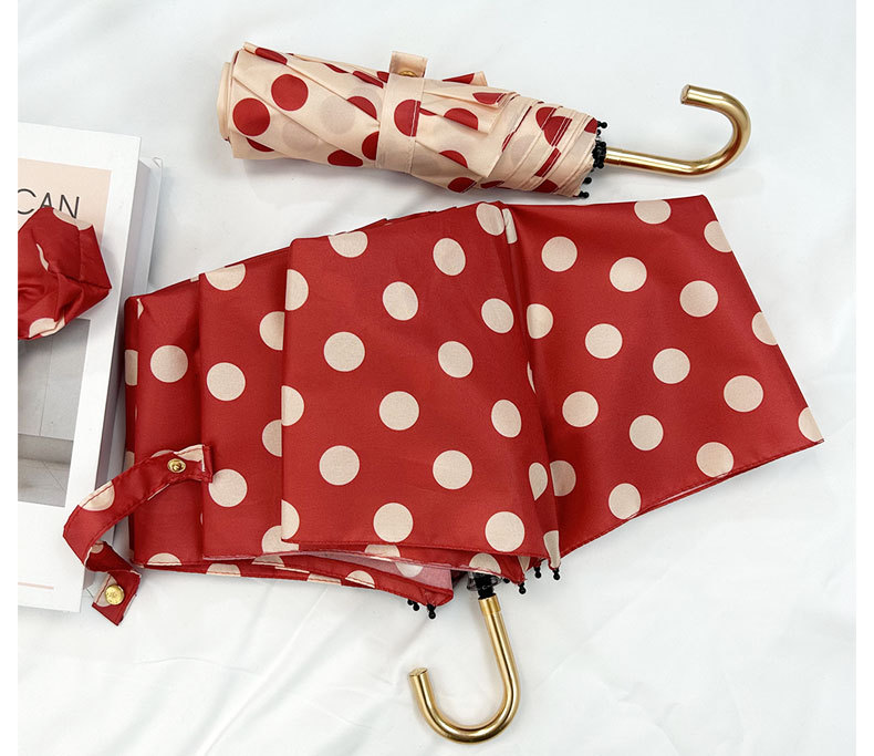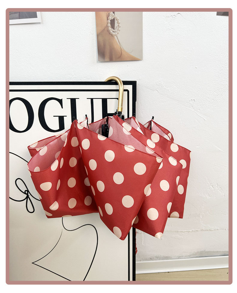 Round polka dot curved hook handle burgundy weather and rain parasol sun protection UV protection new folding sun umbrella vinyl