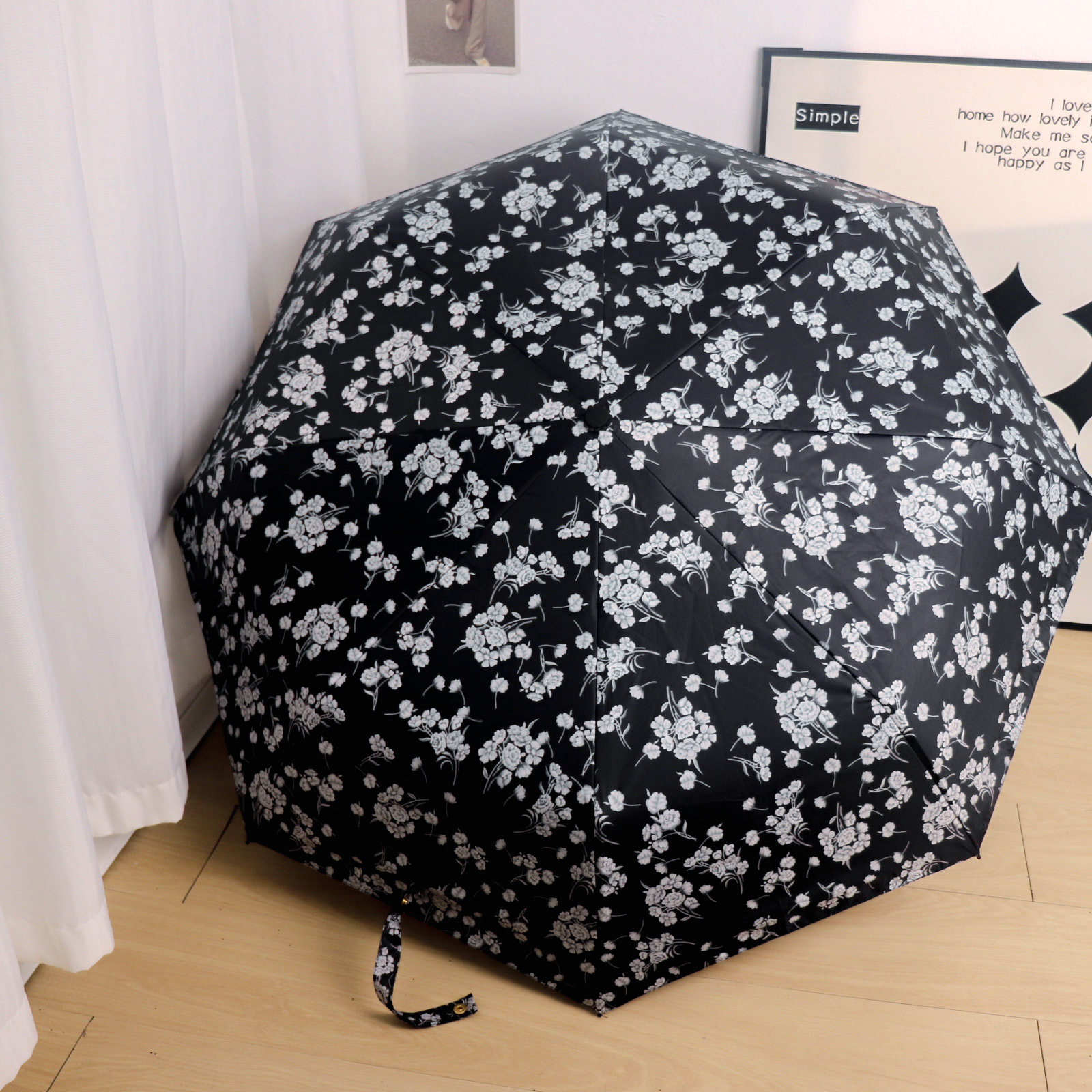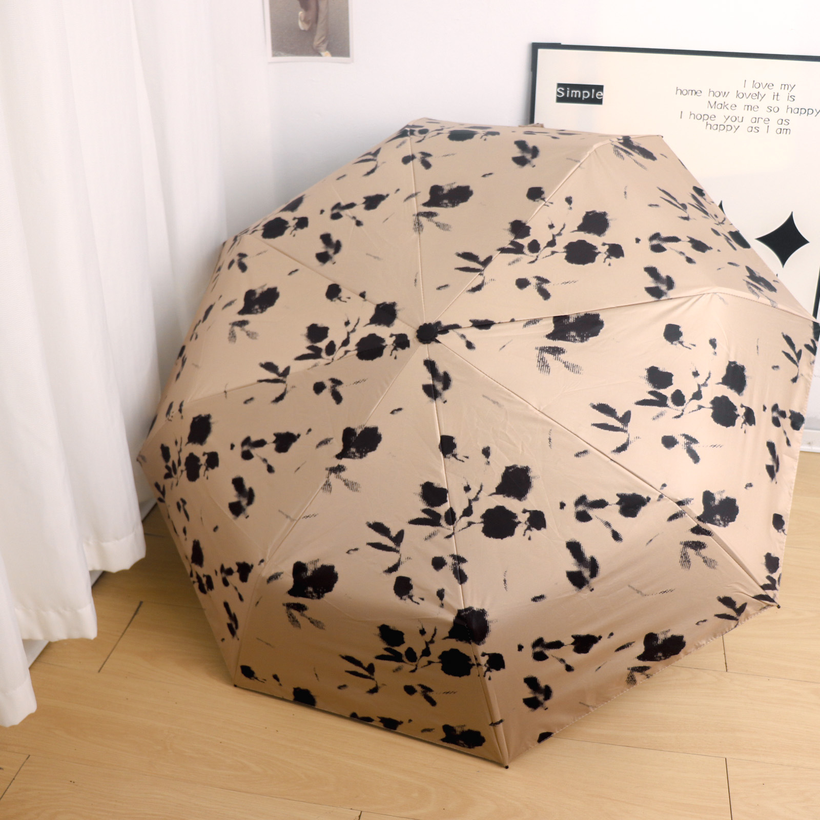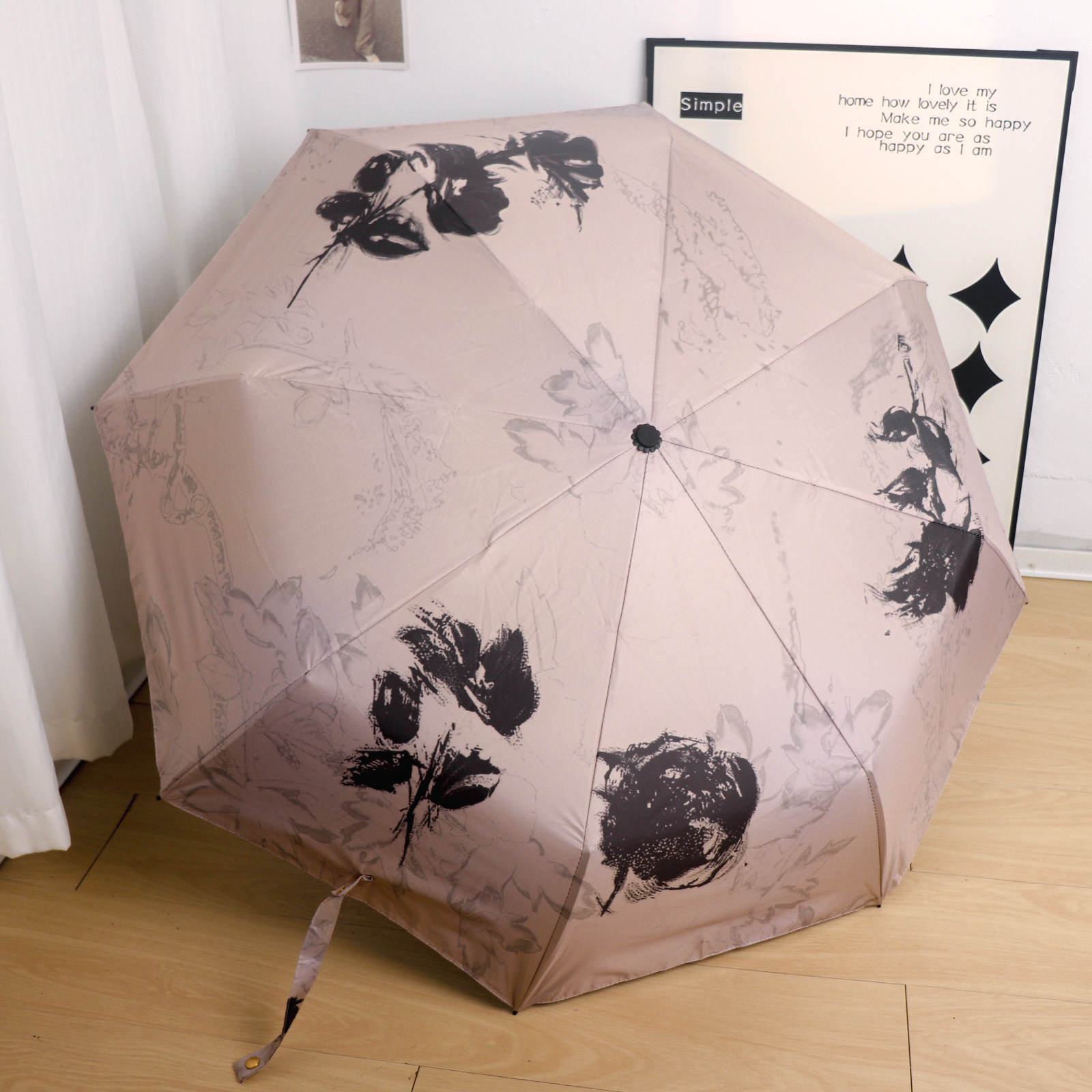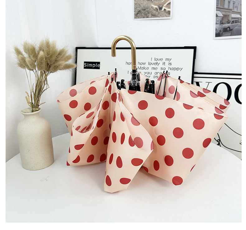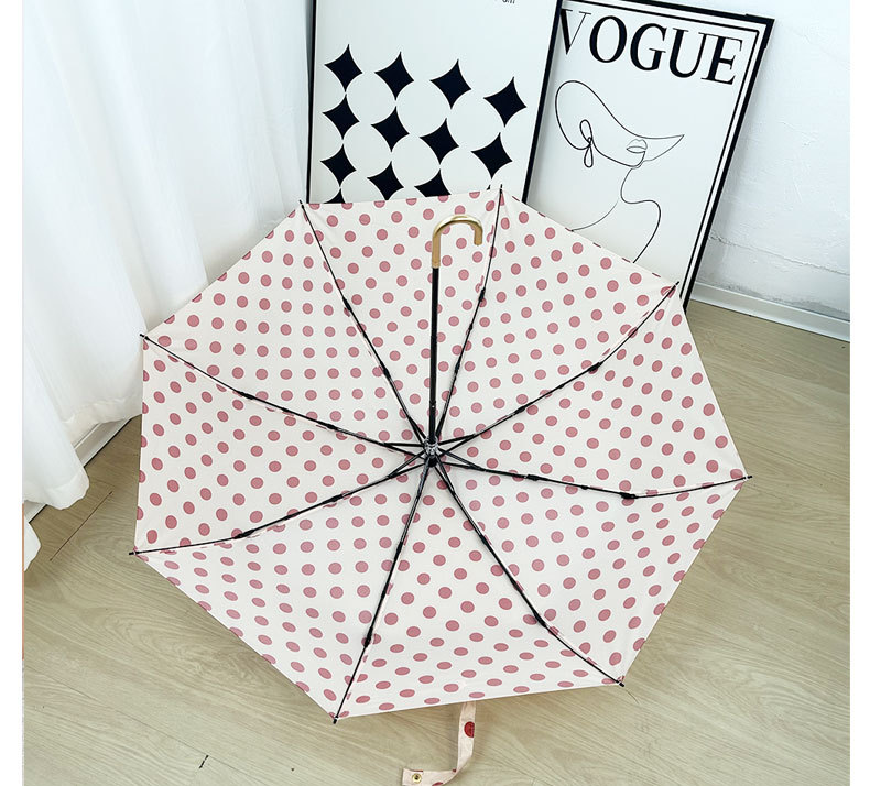 Round polka dot curved hook handle burgundy weather and rain parasol sun protection UV protection new folding sun umbrella vinyl