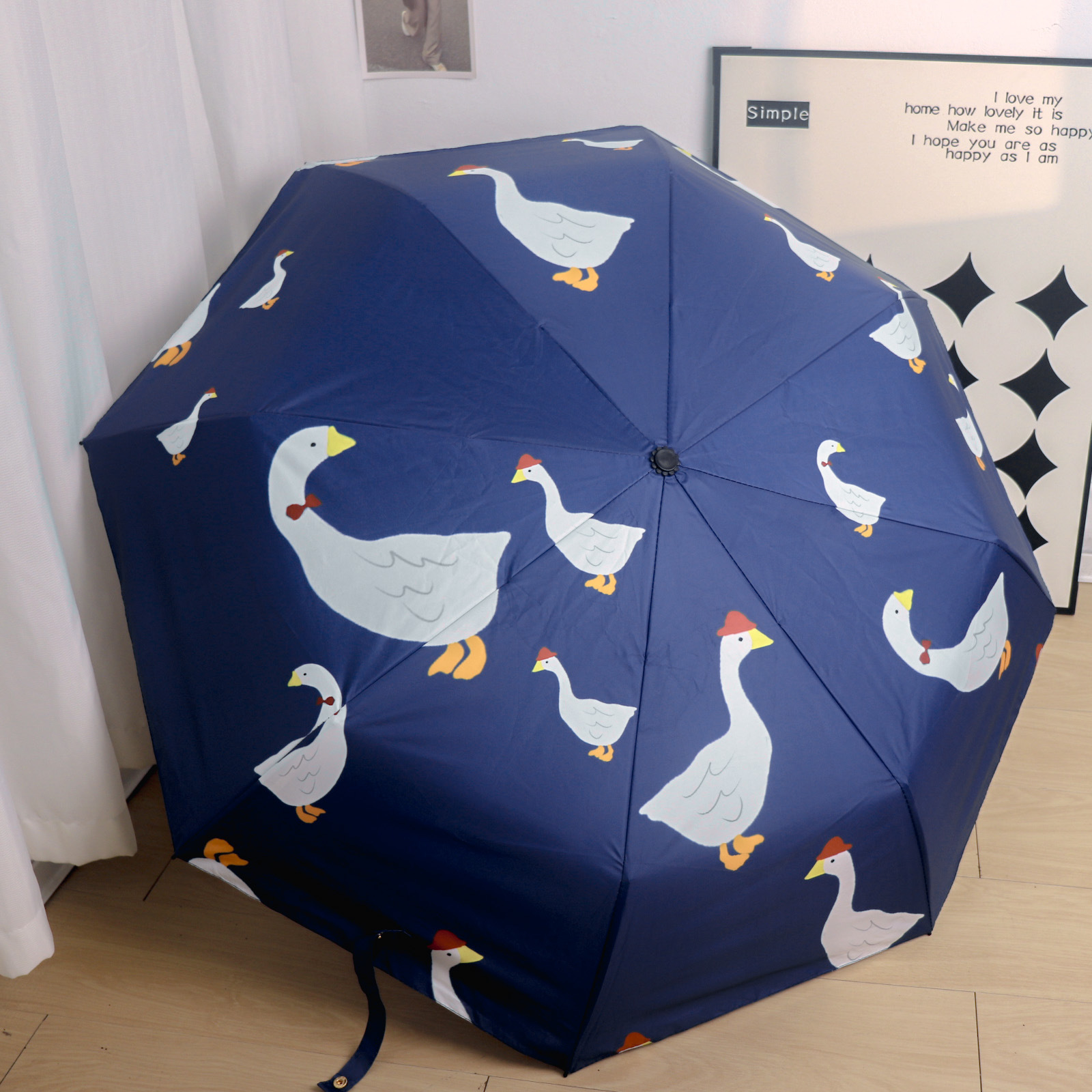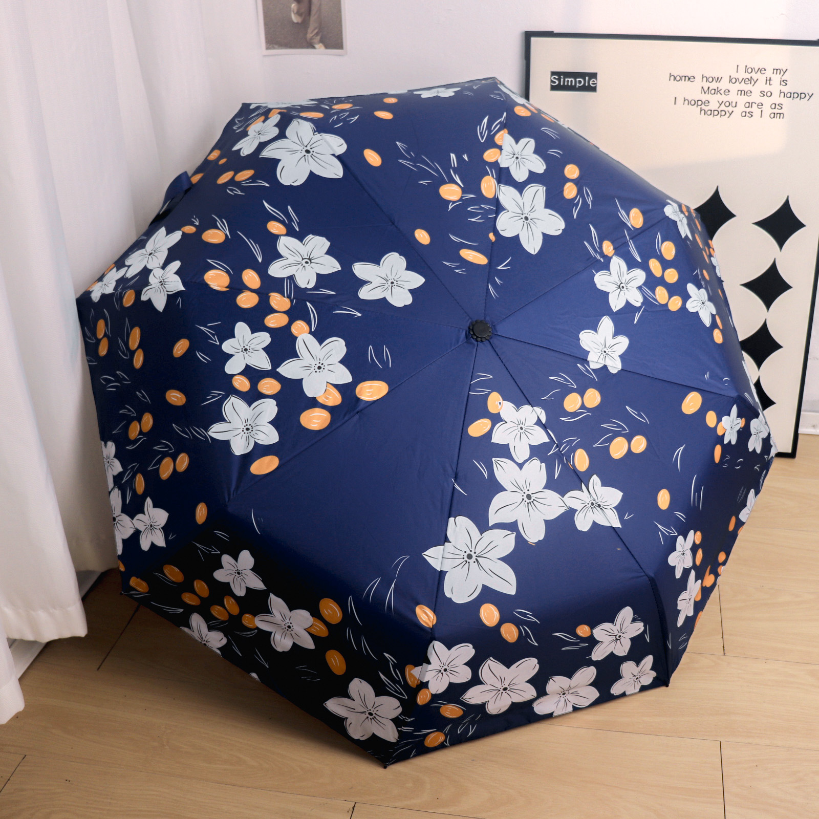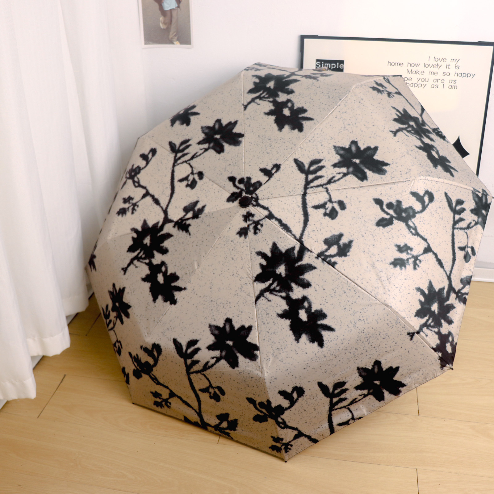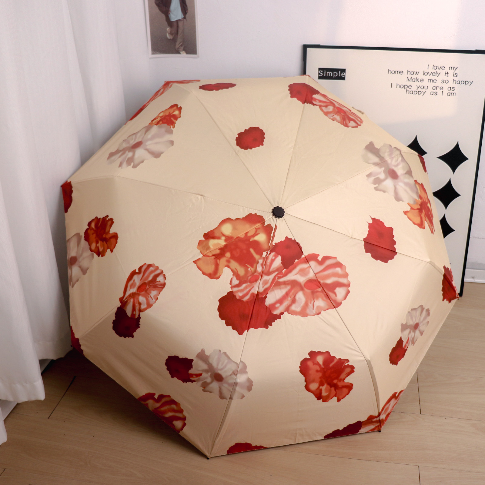 Round polka dot curved hook handle burgundy weather and rain parasol sun protection UV protection new folding sun umbrella vinyl