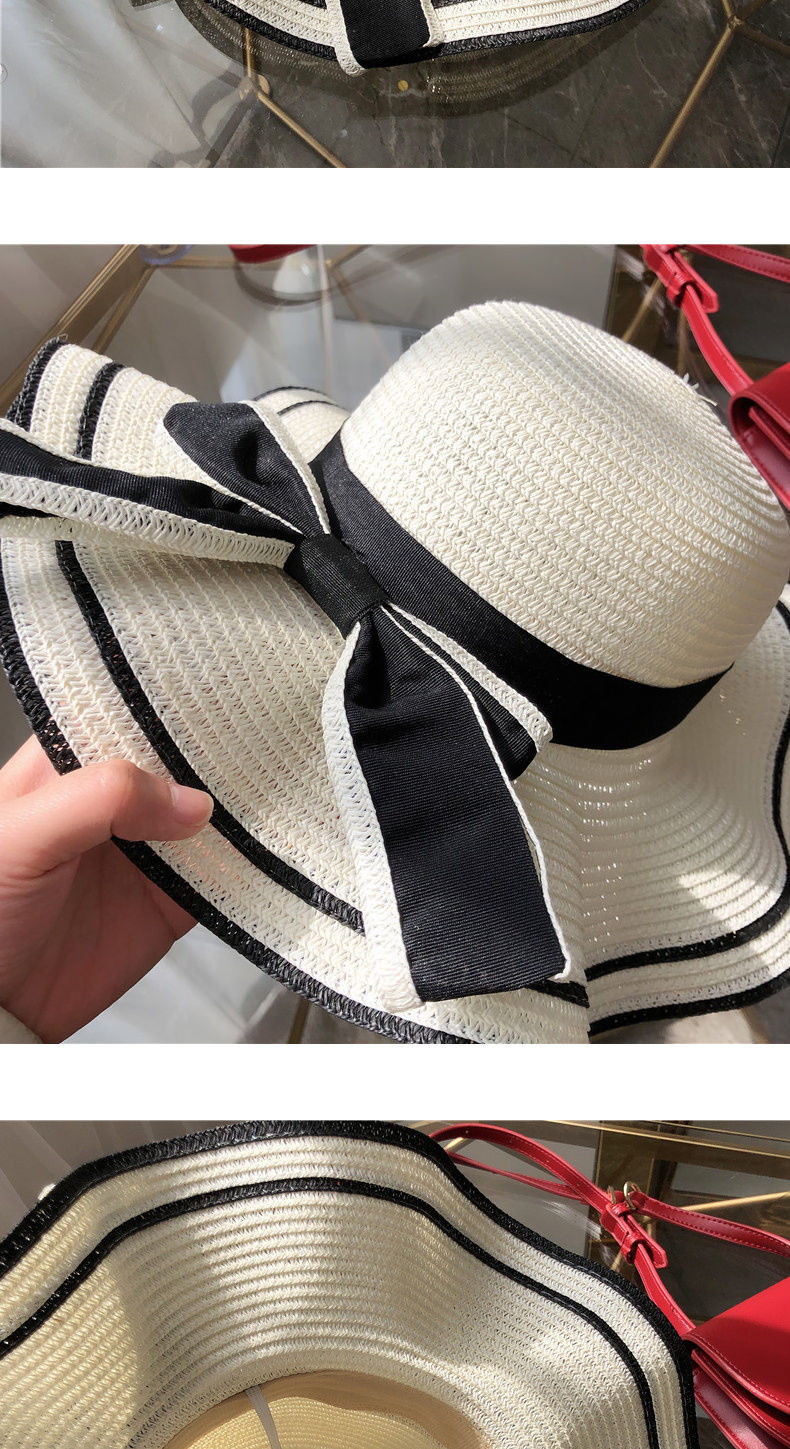 Small fresh straw hat women's anti-sun beach hat seaside sun hat Korean version travel casual sun hat bow hat