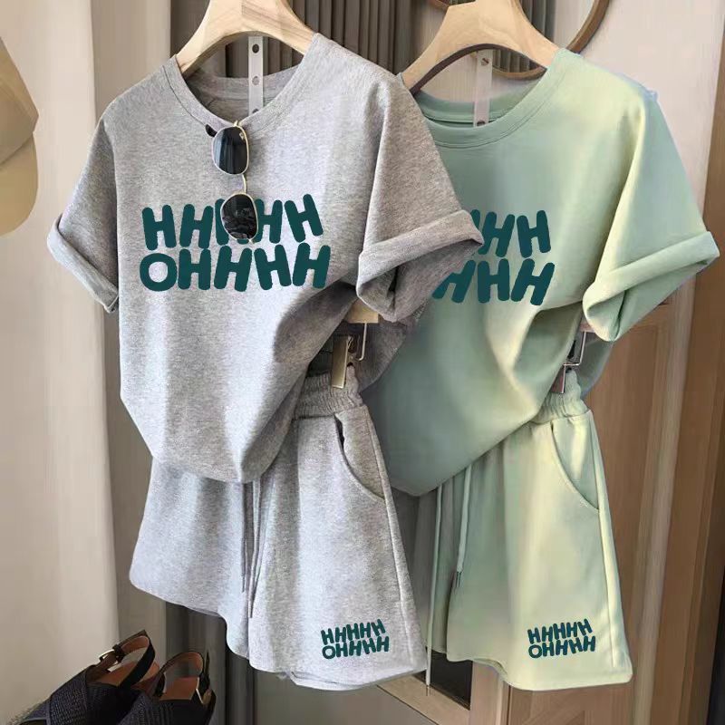 Summer casual new sports running suit women's loose foreign style age-reducing short-sleeved shorts