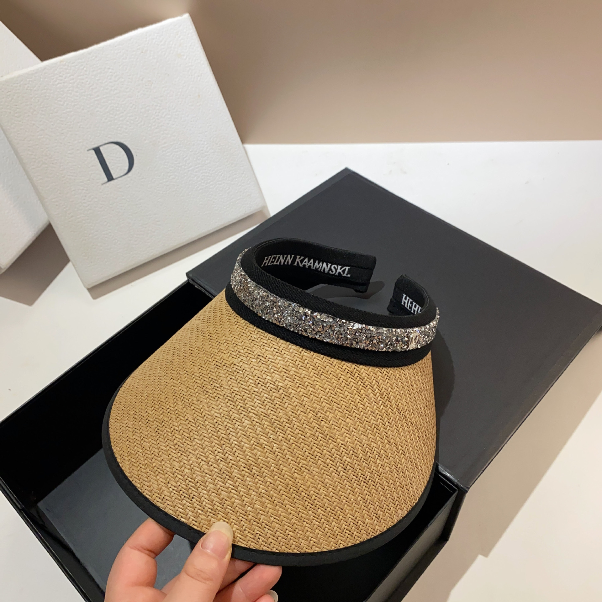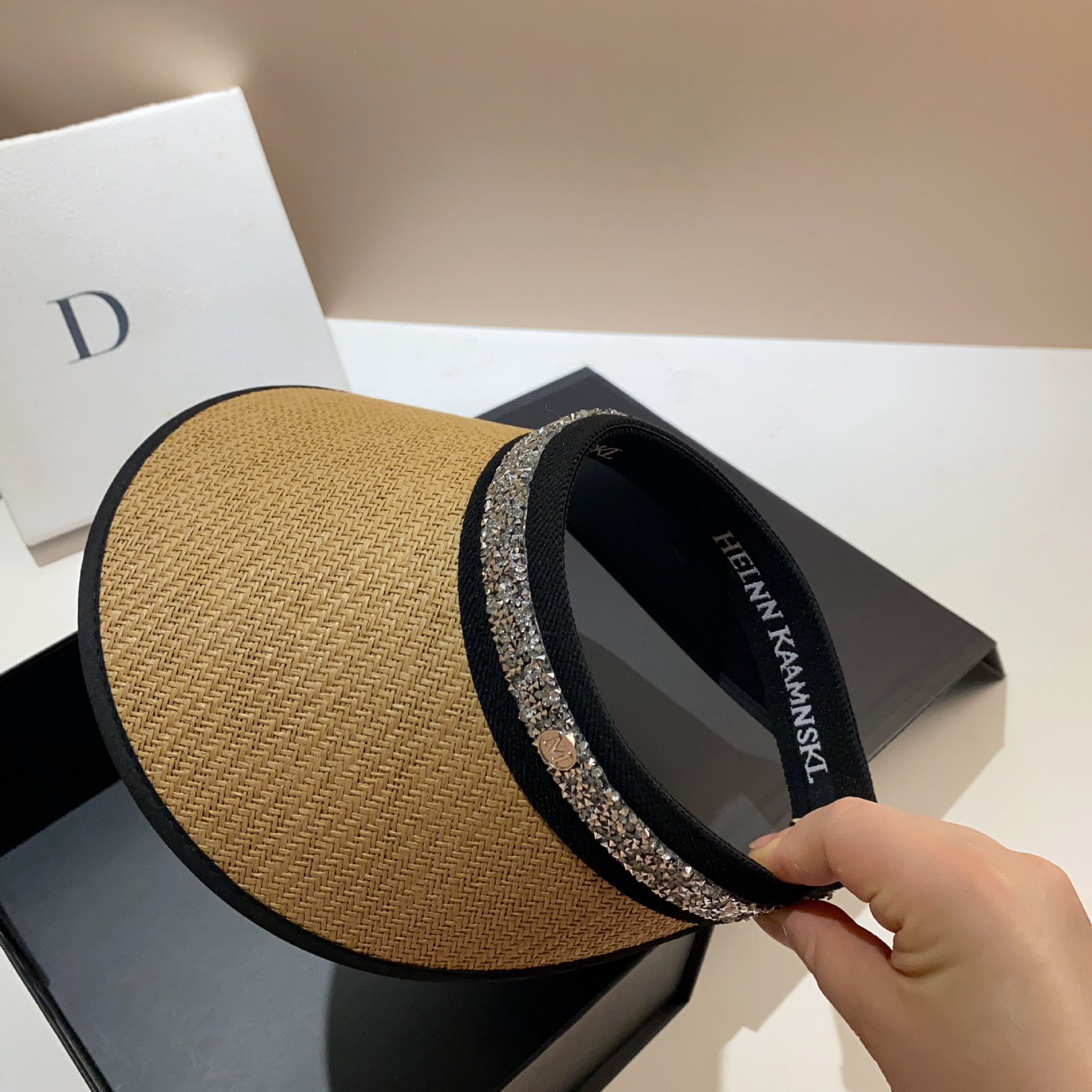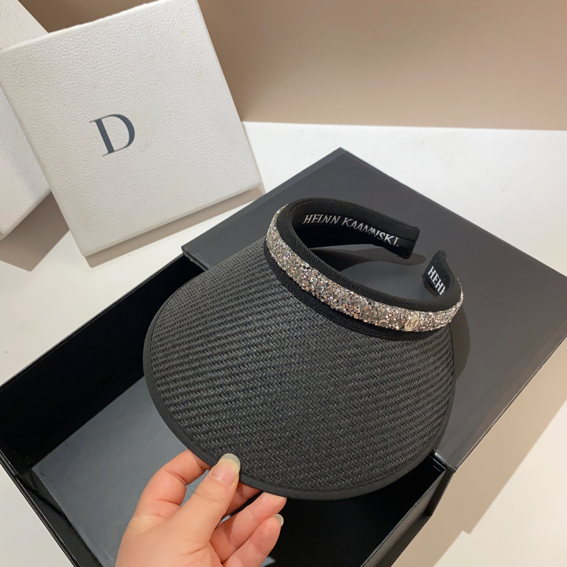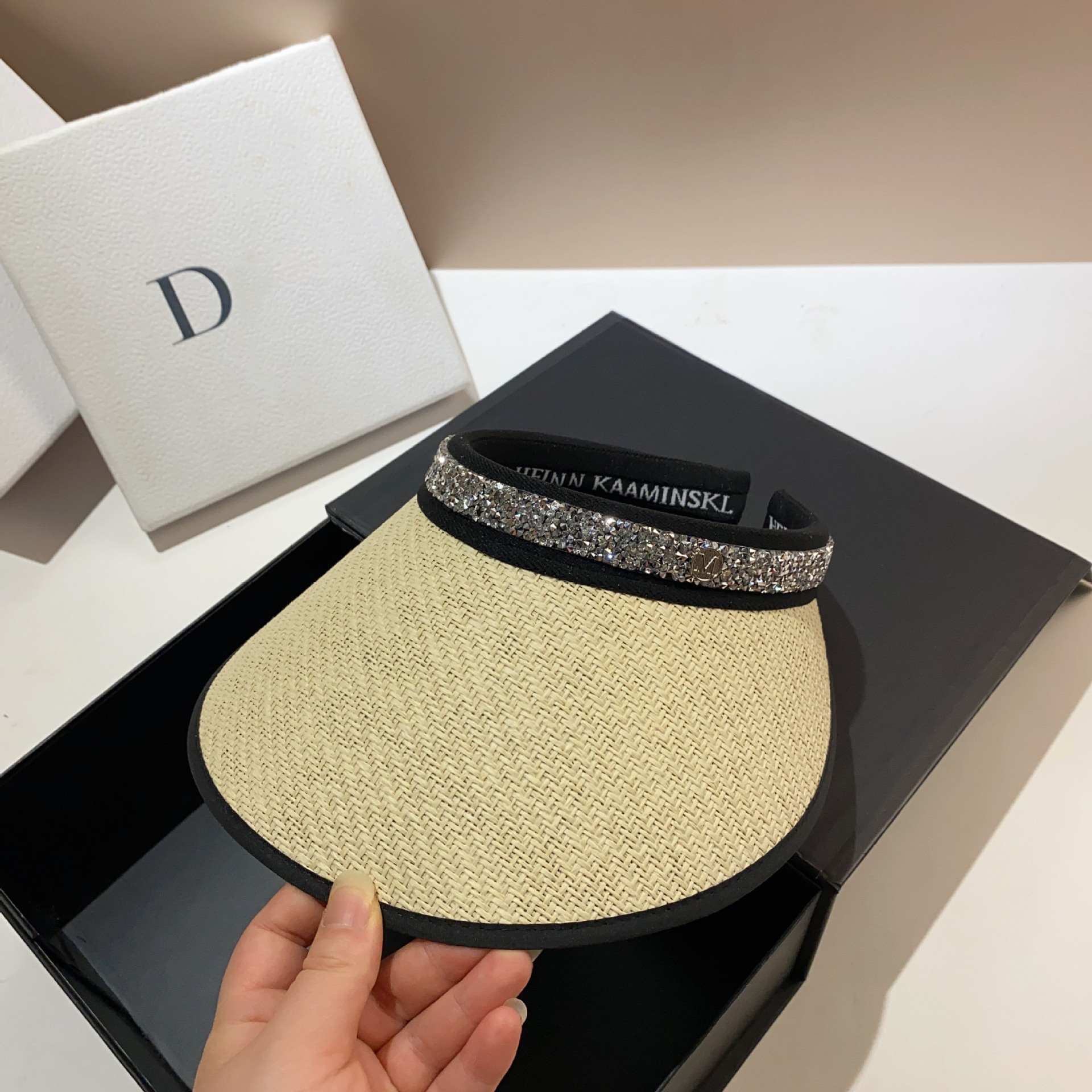 Summer vinyl straw double-layer sunscreen empty top hat fashionable and simple rhinestone fine flash trendy sunshade topless cap