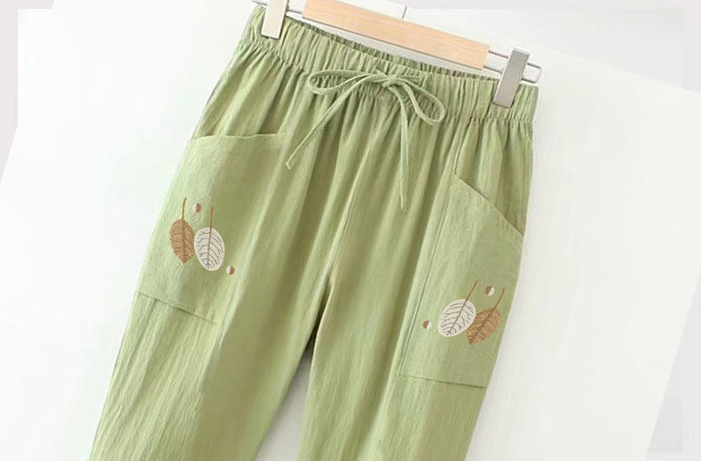 Two-pack, pure cotton summer new large-size women's clothing fat catties elastic waist versatile casual cropped pants